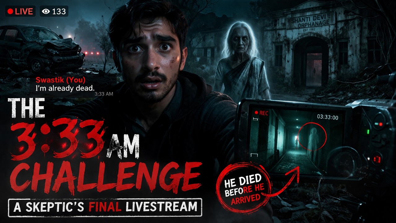 glitch. At exactly 3:33 a.m. The camera feed breaks down into static lines. And right there over Swastik’s shoulder is the faint image of an elderly woman with severe burn scars on her face. While the figure in the monitor is terrifying, a single line of text in the live chat is what truly fractured Swastik’s composure. A pinned notification appears from Swastik official, his own secured account, stating, “Account isn’t hacked. You are really dead.” He spent his life trusting data over his own senses, and